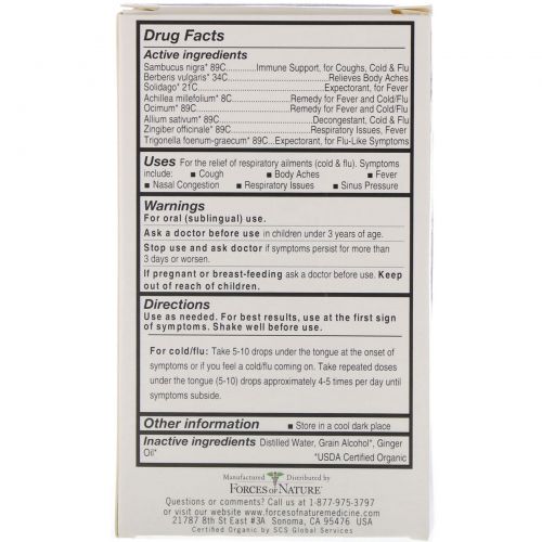 Описание товара Forces of Nature, Средство от простуды и гриппа, органическая медицина, ImmuneDrops, максимальный эффект, 10 мл (0,34 унции)