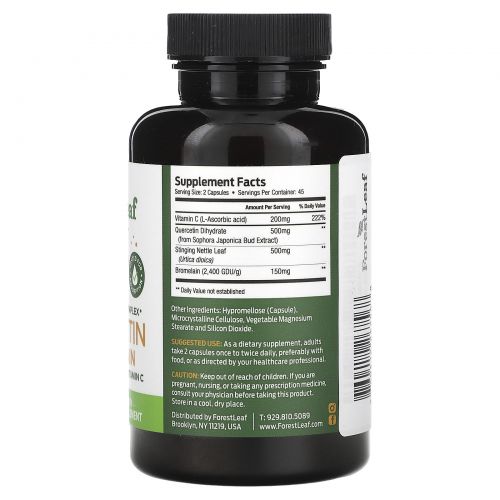 Forest Leaf, Кверцетин бромелаин, крапива двудомная и витамин C, 90 растительных капсул