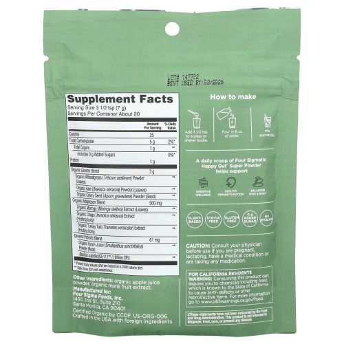 Описание товара Four Sigmatic, Gut Health, суперпорошок с пробиотиками и пребиотиками, яблочный сельдерей, 140 г (4,94 унции)