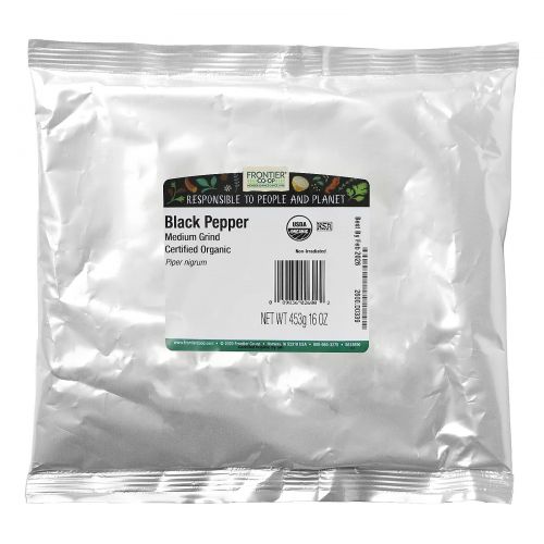 Описание товара Frontier Co-op, Organic Black Pepper, Medium Grind, 16 oz (453 g)