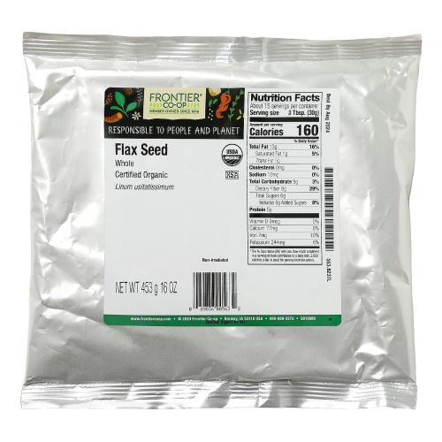 Описание товара Frontier Natural Products, Органические, цельные семена льна, 16 унций (453 г)