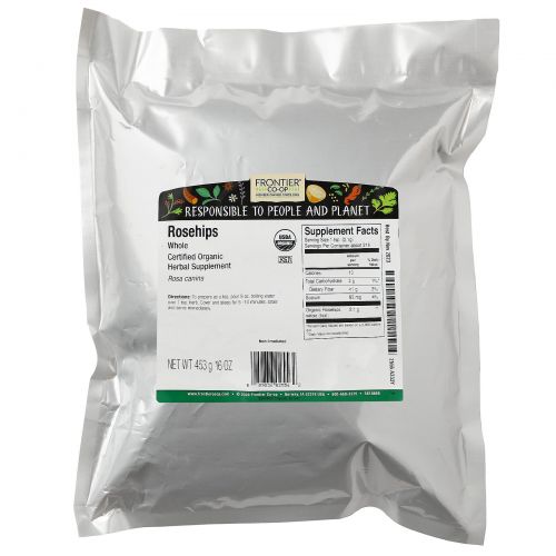 Описание товара Frontier Natural Products, Органические цельные ягоды шиповника, 16 унций (453 г)