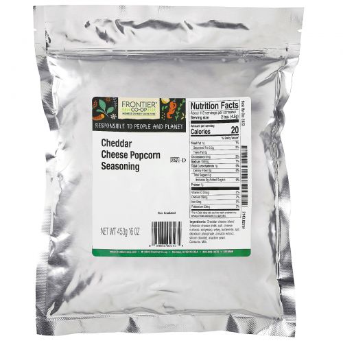 Описание товара Frontier Natural Products, Приправа для попкорна с сыром Чеддер, 453 г