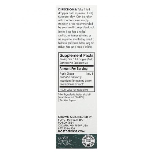 Fungi Perfecti Host Defense, Mushrooms, органический экстракт чаги, 30 мл (1 жидк. Унция)