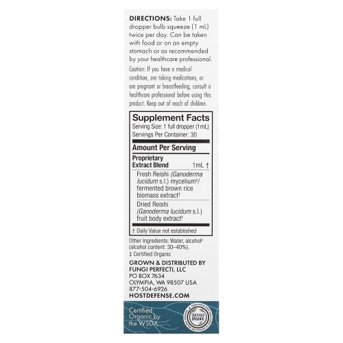 Fungi Perfecti Host Defense, Mushrooms, органический экстракт рейши, 30 мл (1 жидк. Унция)