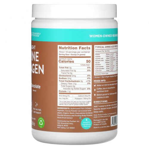 Описание товара Further Food, морской коллаген дикого улова, со вкусом шоколада, 256 г (9,03 унции)