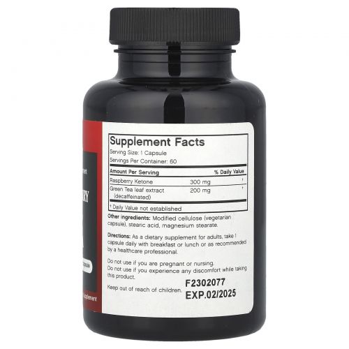 Каждая вегетарианская капсула FutureBiotics Red Raspberry Ketone + Green Tea содержит 300 мг чистого малинового кетона, а также 200 мг экстракта зеленого чая без кофеина.