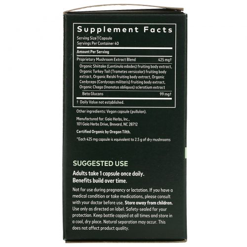 Описание товара Gaia Herbs, Immune Mushroom Blend, 40 Vegan Capsules