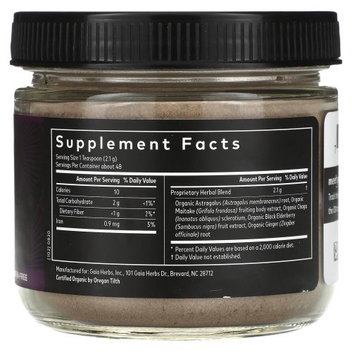 Описание товара Gaia Herbs, Immune Shine, с майтаке, чагой, бузиной и имбирем, 100 г (3,53 унции)