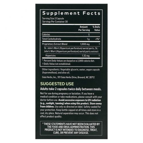 Описание товара Gaia Herbs, Зверобой, 60 растительных жидкостных фитокапсул