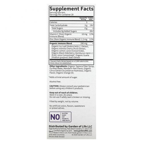 Описание товара Garden of Life, Mykind Organics, Kids Cough & Mucus, Immune Syrup with Ivy Leaf, Zinc & Vitamin C, 3.92 fl oz (116 ml)