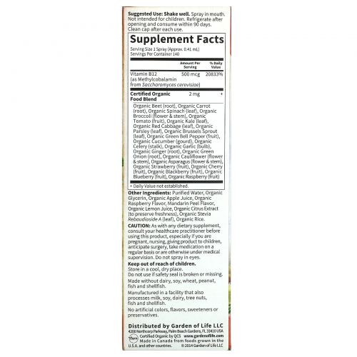 Описание товара Garden of Life, MyKind Organics, Органический спрей с витамином B-12, со вкусом малины, 2 унции (58 мл)