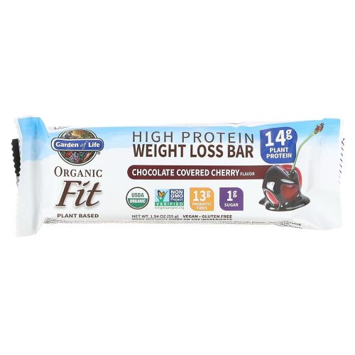 Описание товара Garden of Life, Organic Fit, батончик для снижения веса с высоким содержанием протеина, вишня в шоколаде, 12 батончиков по 55 г (1,94 унции)