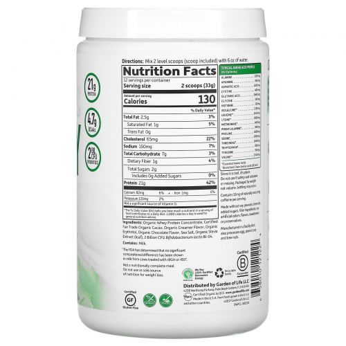 Описание товара Garden of Life, Органический сывороточный протеин из молока коров, выкормленных травой, какао, 14,03 унц. (397,5 г)