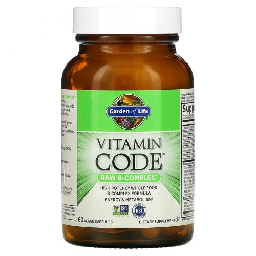Описание товара Garden of Life, Витаминный код, сырой B-комплекс, 60 веганских капсул