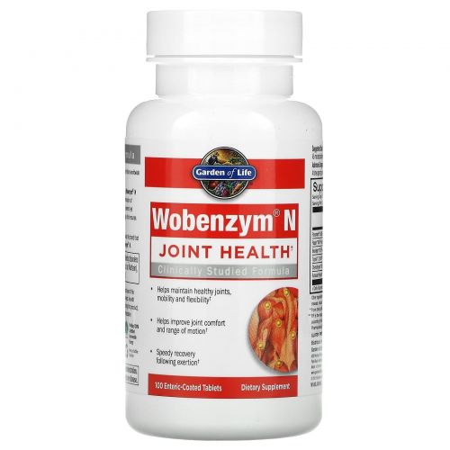 Описание товара Garden of Life, Wobenzym N, Joint Health, 100 Enteric-Coated Tablets