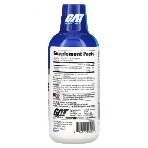 Описание товара GAT, L-Carnitine, Amino Acid, Lemon Blast, 1500 mg , 16 oz (473 ml)