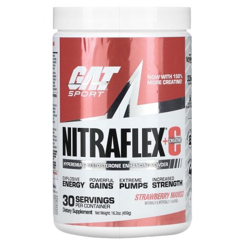 Описание товара GAT, Sport, NITRAFLEX + креатин, клубника и манго, 459 г (16,2 унции)