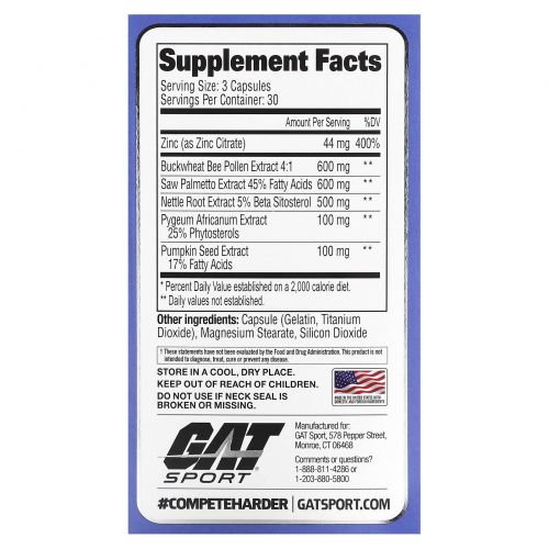 Описание товара GAT, Sport, Testrol для простаты, 90 капсул