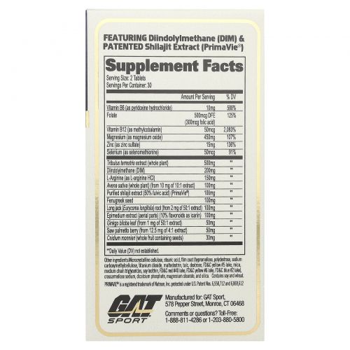 Описание товара GAT, Testrol Gold ES, средство для повышения уровня тестостерона, 60 таблеток
