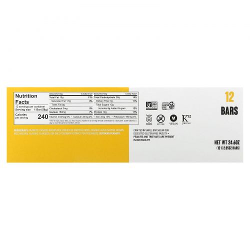 Описание товара The GFB, Безглютеновый батончик, арахисовая паста, 12 батончиков, 58 г