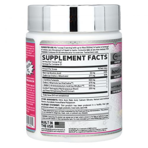 Термический продукт — это нестимулирующий термогенный продукт, который способствует усилению окисления свободных жирных кислот. Она содержит дополнительное количество холина для поддержки связи мозг-мышечная и поддержания уровня внутримышечного карнитина. Superior — один из первых продуктов, содержащих MitoBurn™ — очищенную форму L-BAIBA — миокина, оказывающего положительное воздействие на липолиз и потемнение белых жировых клеток.