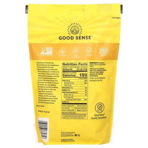 Компания Good Sense Foods дарит вам горсть полезных продуктов на протяжении уже двух поколений. Вдохновленные веселыми семейными приключениями и созданные на нашей кухне в Миннесоте, мы гордимся тем, что предлагаем вам лучшие вкусные и полезные снеки. Мы обжариваем, смешиваем и упаковываем наши снеки самостоятельно, чтобы вы получали продукты высочайшего качества из экологически чистых, питательных и вкусных ингредиентов. Наполняйте свои дни приключениями, заряжайте снеками Good Sense® и делитесь пользой.