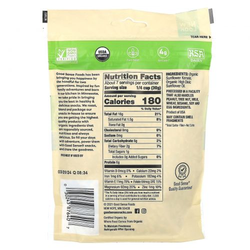 Описание товара Good Sense, органические ядра подсолнечника, без соли, обжаренные, 213 г (7,5 унции)