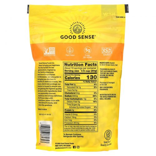 Описание товара Good Sense, семена тыквы в скорлупе, соленые, обжаренные, 312 г (11 унций)