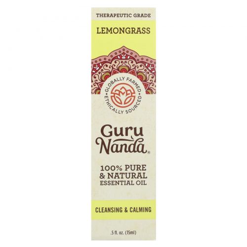 GuruNanda, на 100% чистое и натуральное эфирное масло, лемонграсс, 15 мл (0,5 жидк. унции)