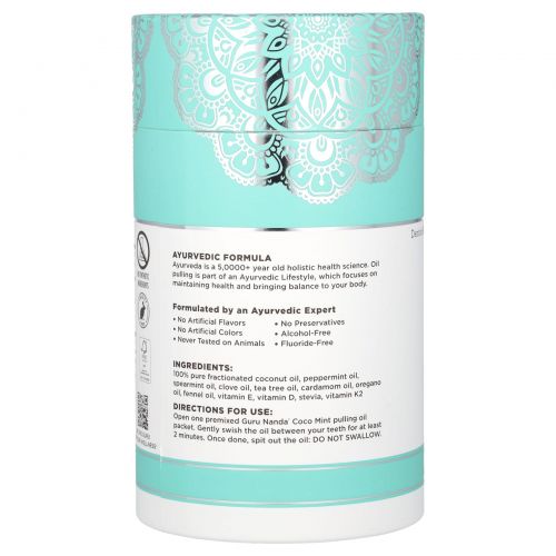 Описание товара GuruNanda, отбеливающее масло для вытягивания, кокос и мята, 28 пакетиков по 12 мл (0,4 жидк. унции)