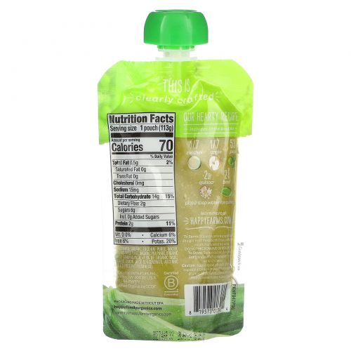 Описание товара Happy Family Organics, Happy Baby, для детей от 6 месяцев, цукини, яблоки, горох, киноа и базилик, 113 г (4 унции)