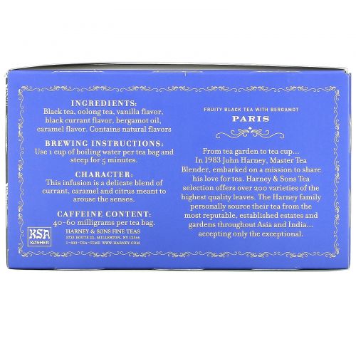 Описание товара Harney & Sons, Paris, Fruity Black Tea with Bergamot, 50 Tea Bags, 3.17 oz (90 g)