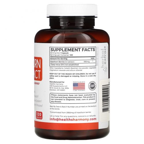 Healths Harmony, Экстракт боярышника 4: 1, 120 капсул