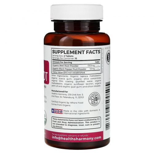 Healths Harmony, органическая свекла с органическим черным перцем, 30 таблеток