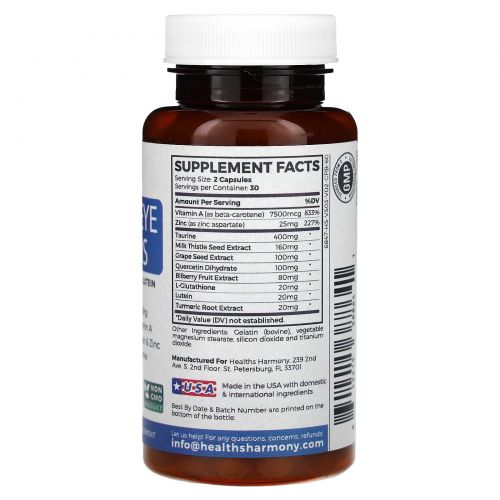 Описание товара Healths Harmony, витамины для глаз с лютеином, 60 капсул