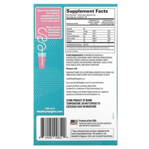 Описание товара Healthy Heights, Happy Tummies+, для детей от 2 лет, фруктовый пунш, 24 пакетика по 7 г (0,25 унции)