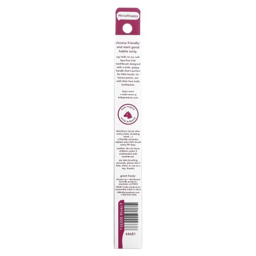 Познакомьтесь с нашей мягкой детской зубной щеткой без бисфенола-пара с широкой удобной ручкой, которая идеально подходит для маленьких ручек. Для получения дополнительных баллов используйте их любимую зубную пасту Hello.