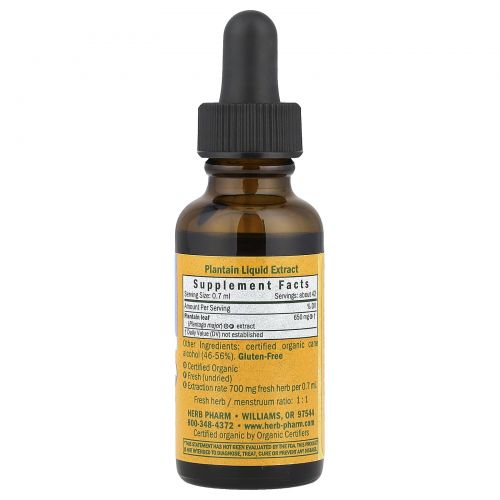 Описание товара Herb Pharm, Подорожник, свежий лист, 1 жидкая унция (30 мл)