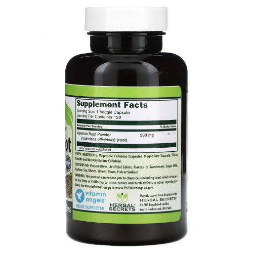 Herbal Secrets, Корень валерианы, 500 мг, 120 растительных капсул