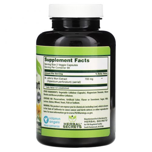 Herbal Secrets, Зверобой, 350 мг, 180 растительных капсул