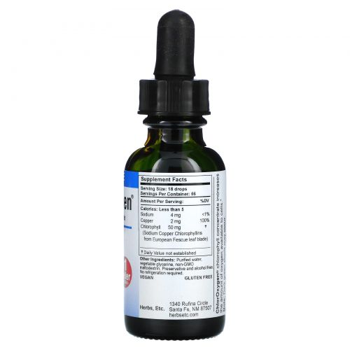 Описание товара Herbs Etc., ChlorOxygen, концентрат хлорофилла без алкоголя, 1 жидкая унция (29,6 мл)