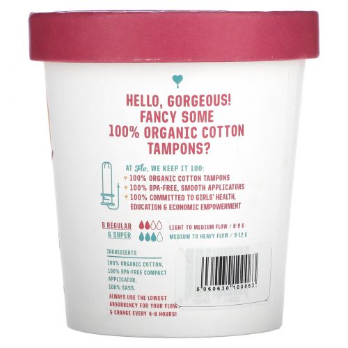 Описание товара Here We Flo, Органические тампоны, обычные + супер, 14 тампонов