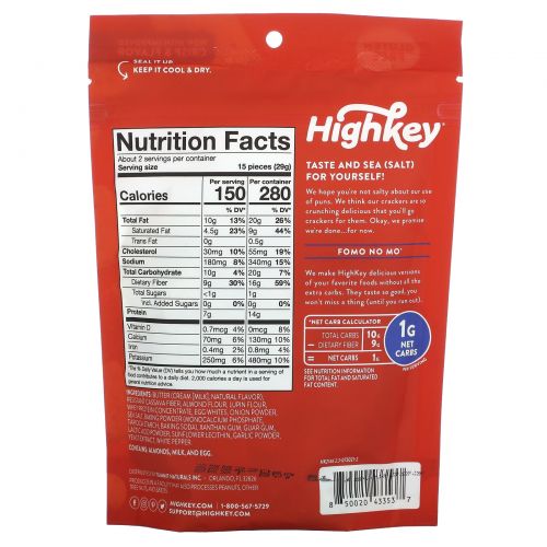 Описание товара HighKey, Almond Flour Crackers, Sea Salt, 2 oz (56.6 g)