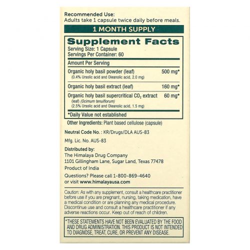 Описание товара Himalaya Herbal Healthcare, Базилик, 60 растительных капсул