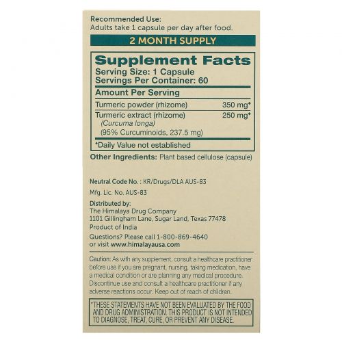 Описание товара Himalaya Herbal Healthcare, Куркума, 60 растительных капсул