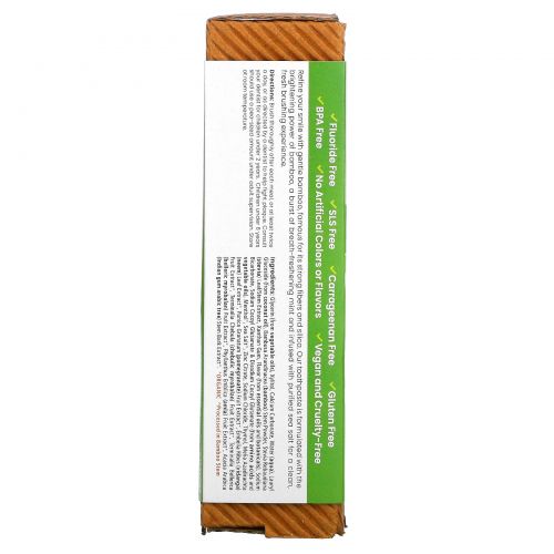 Украсьте свою улыбку с помощью нежного бамбука, известного своими прочными волокнами и диоксидом кремния. Наша зубная паста содержит осветляющую силу бамбука, освежающую дыхание мяту и очищенную морскую соль, обеспечивающую чистоту и свежесть чистки зубов.