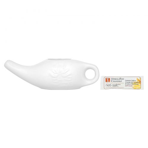 Описание товара Himalayan Chandra, фарфоровый горшок для нети с пакетиками соли нети, 2,16 г