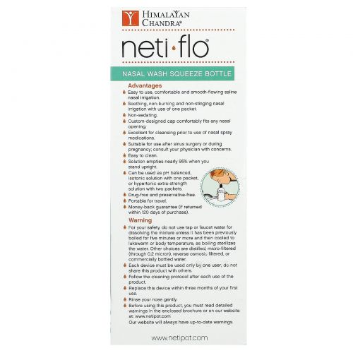 Описание товара Himalayan Chandra, флакон для промывания носа с пакетиками соли нети, 2,16 г