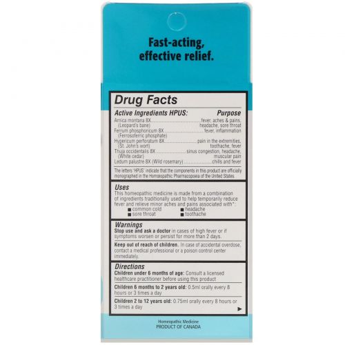 Описание товара Homeolab USA, Kids Relief, жидкость для перорального применения от боли и лихорадки, для детей 0–12 лет, со вкусом вишни, 25 мл (0,85 жидк. Унции)